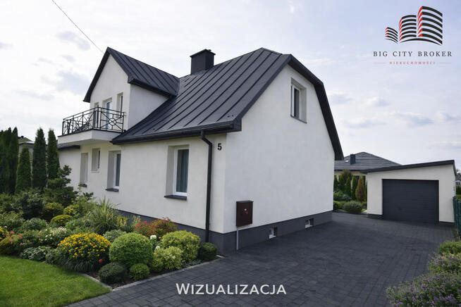 3 ZDJĘCIA Z WIZUALIZACJĄ ELEWACJI, DACHU ORAZ OGRODU Opis nieruchomości: Na sprzedaż wyjątkowy, wolnostojący dom o ...